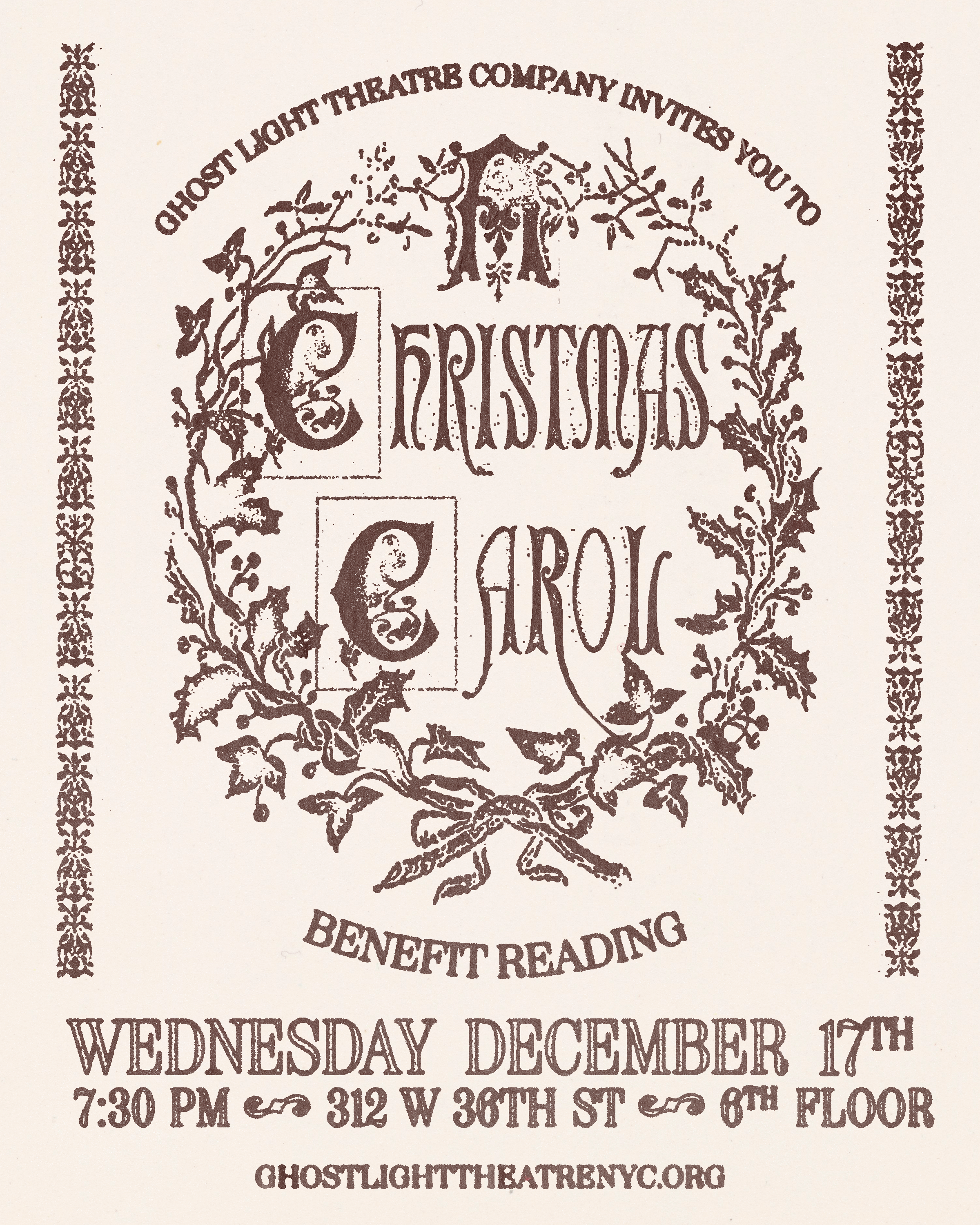 Ghost Light Theatre Company invites you to a cozy reading of Charles Dickens’ A Christmas Carol. Join us for an evening of holiday cheer, warm hot cocoa, and timeless storytelling.